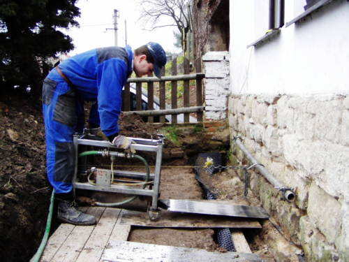 K poškodeniu alebo rozbitiu muriva nedochádza. Je tomu tak vždy, keď je murivo vymurované v jednej rovine a špára je teda rovnobežná a pravidelná. Pokiaľ je murivo výškovo odsadené, alebo špára nie je pravidelná, musia dosky preniknúť murivom a tak si vlastne vytvárajú vlastnú špáru (rez murivom). Na tento účel sú určené izolačné dosky vybavené HROTOM (špicou) na strane, ktorou prenikajú do muriva (Europatent Nr. 0544639, CZ patent č. 281038). Toto zaostrenie umožňuje jednoduché prenikanie dosiek aj vo veľmi tvrdých a nesúrodých materiáloch. Zároveň sa tým zamedzuje nežiaducim otrasom. Doska v murive preniká plynulo a „nesunie“ pred sebou stavebný materiál. Veľmi tvrdá malta, úzka špára a tlaky v murive tým pádom prestávajú byť problémom.